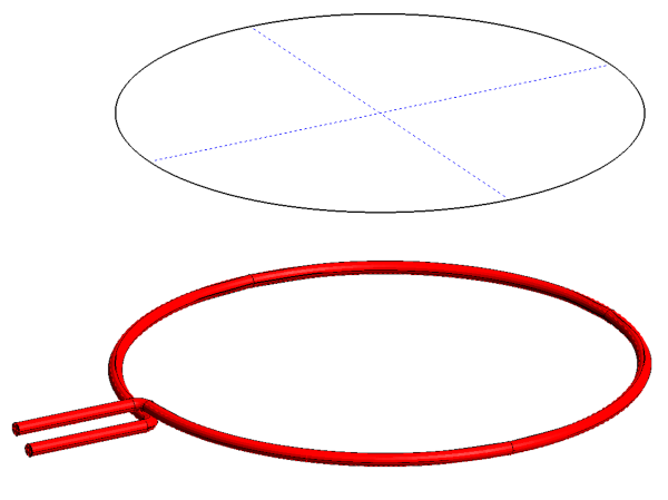 Exemple simple d'une spire (en haut : circuit filiforme, en bas : géométrie réelle).